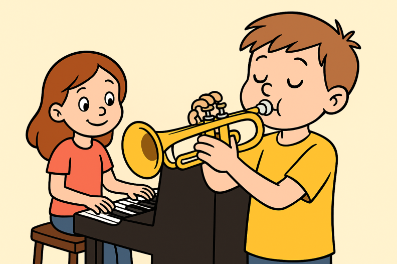 Frühinstrumentaler Unterricht für Trompete; auf Wunsch auch für Sopranposaune (ab 6 Jahre, je nach Entwicklungsstand ab 5 Jahre möglich)